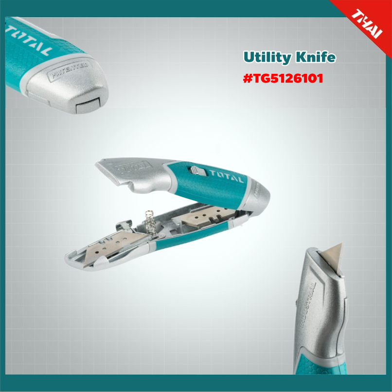TOTAL มีดคัตเตอร์ อเนกประสงค์ TG5126101 พร้อมใบมีด 6 ใบ Utility Knifeงานหนัก เครื่องมือ เครื่องมือช่าง- สินค้าใหม่ 100%