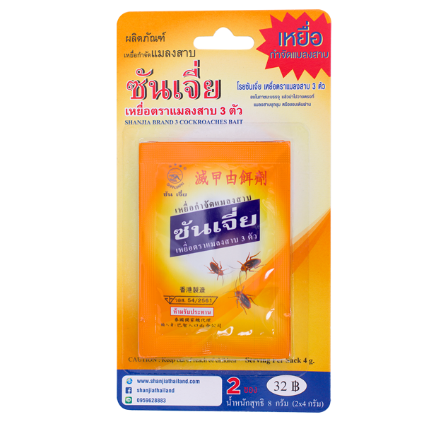 แมลง ซันเจี่ย ตราแมลงสาบ3ตัว ยากำจัดแมลงสาบ แมลง แบบผง ขนาด 8 กรัม แพ็คละ 2 ซอง มีลักษณะเป็นแบบผง ใช้สำหรับโรย ใช้ง่าย สะดวก