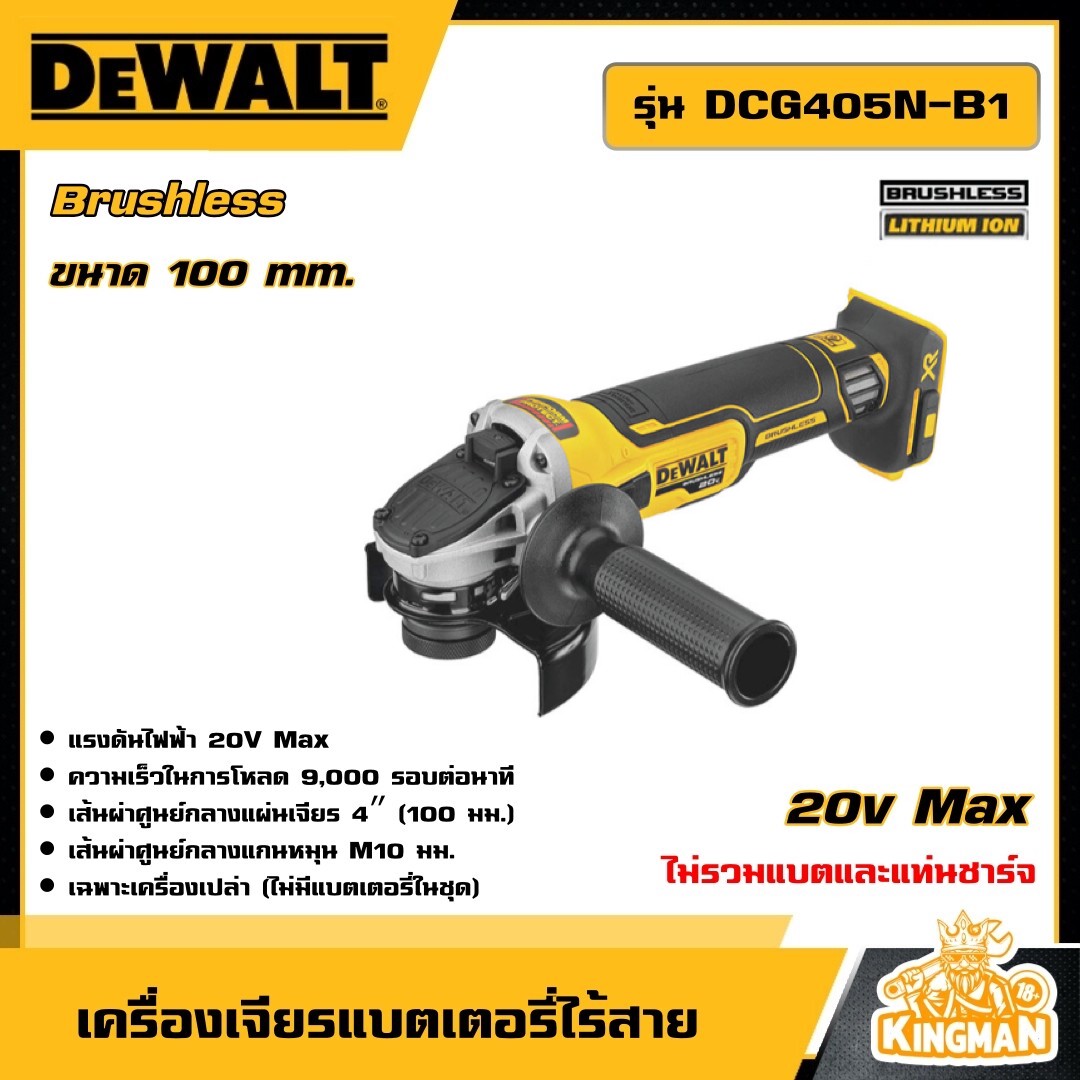 DEWALT เครื่องเจียรไร้สาย ไร้แปรงถ่าน 100 MM. 18V รุ่น DCG405N-B1 (ไม่รวมแบตและแท่นชาร์จ) อุปกรณ์เครื่องมือช่าง งานช่าง ดีวอลท์